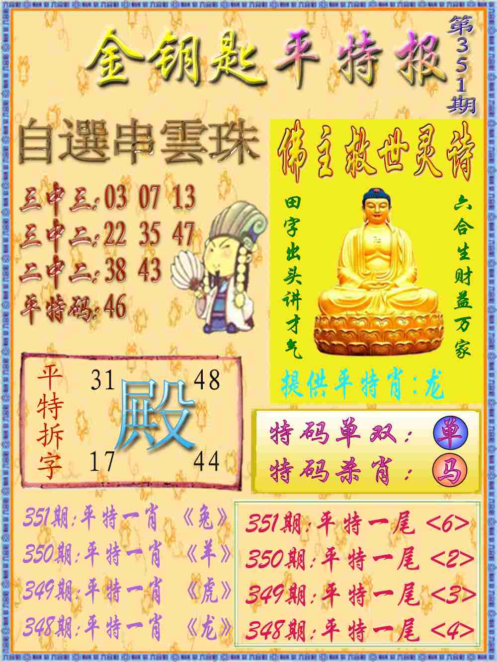 | 351期:公式一肖 | 351期:公式一波 | 351期:公式单双 |