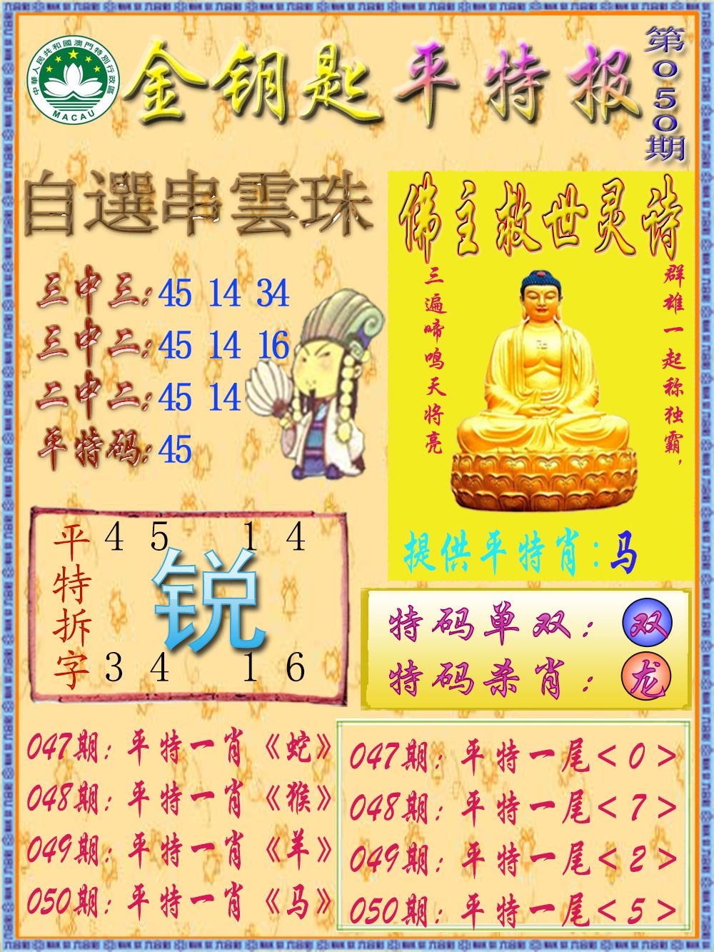 | 050期:公式一肖 | 050期:公式一波 | 050期:公式单双 |